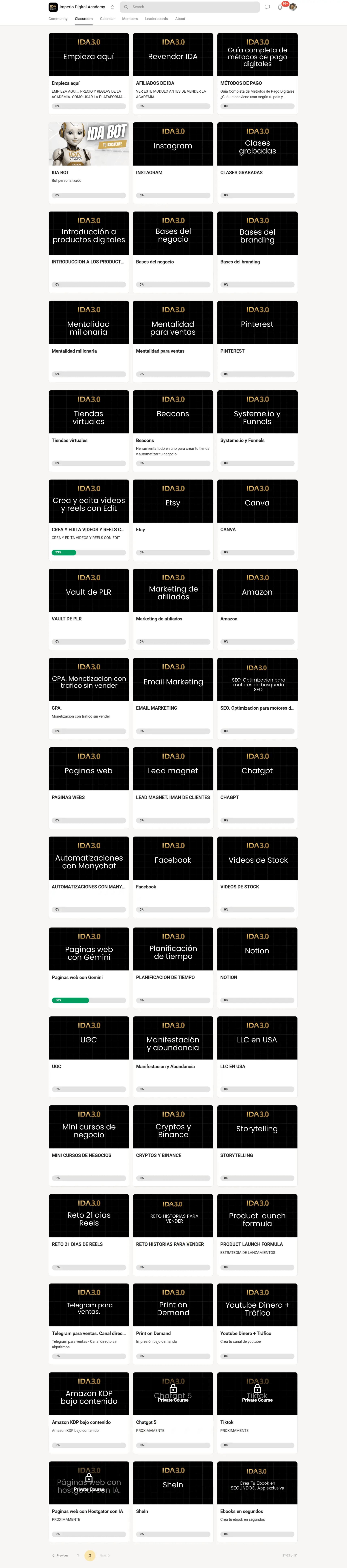 Cursos sobre negocios digitales, marketing, ventas y mentalidad emprendedora. Accedés de por vida y aprendés a tu ritmo, sin depender de nadie ni pagar mensualidades.
